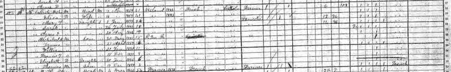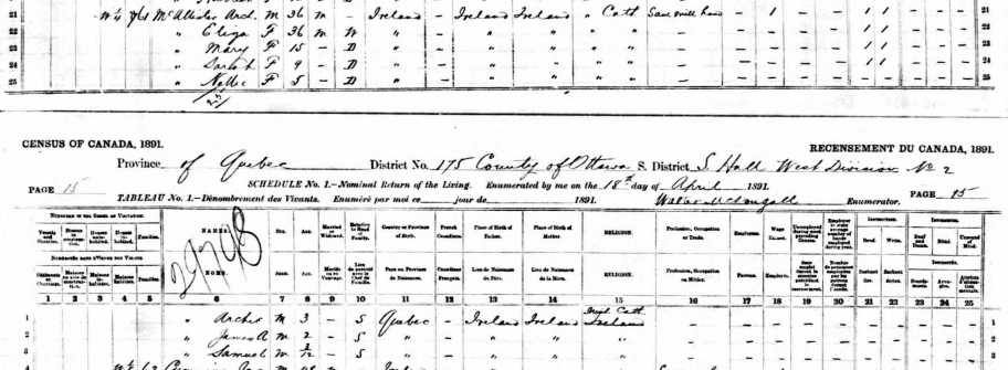 Let’s go back to the 1901 census because it contains a lot of information. Archibald is a farmer and worked for 6 months in the last year. He earned $ 108. The family has several children: Mary, Sarah, Agnes E [Nellie], Archibald [Archie], James, William, Francis [Frank], Elizabeth and Thomas [Thomas Henry]. The four oldest children worked as domestics. Mary and Sarah worked 12 months and earned $ 96 each. The census tells us that only William and Sarah speak French.