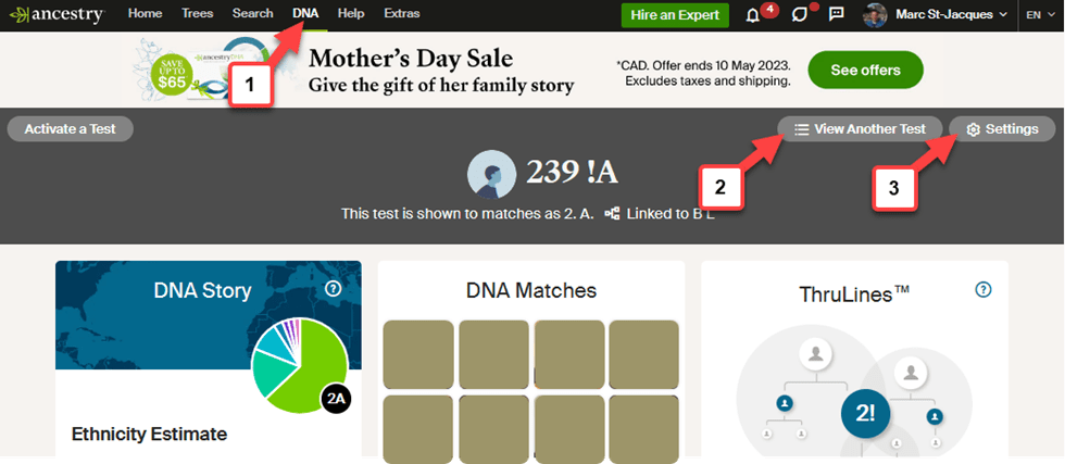 1. In Ancestry, click on the DNA link in the top black menu. This will bring you to the DNA page.