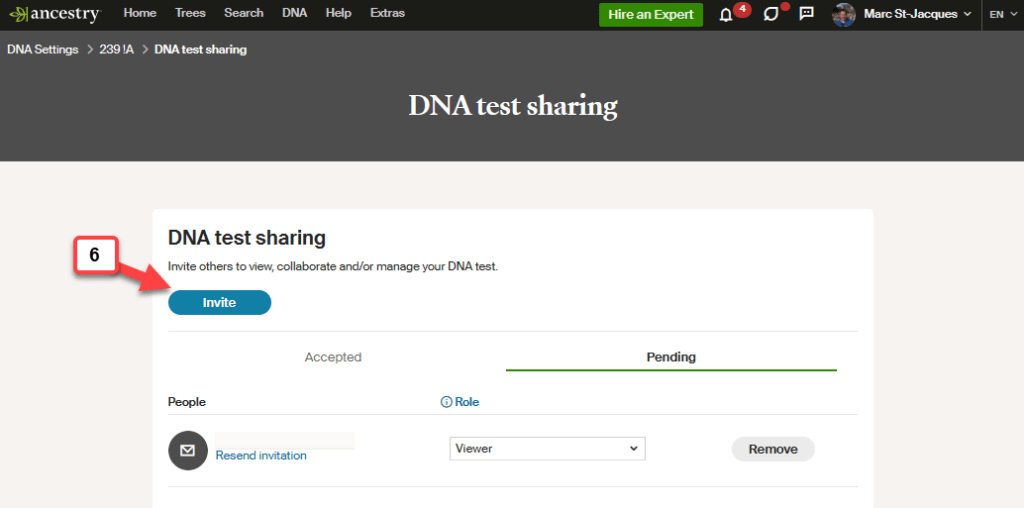 7. You will need to put the email of the person you wish to share your results with and select the role they will have. The last step is to press the Invite button and you are done!