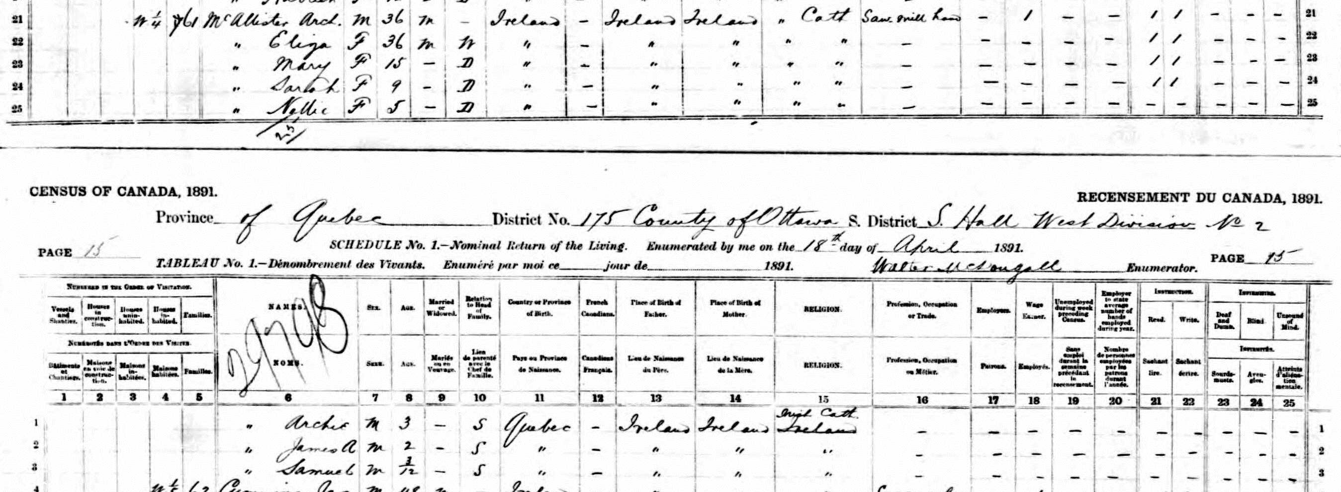 From the census of Canada, 1891.