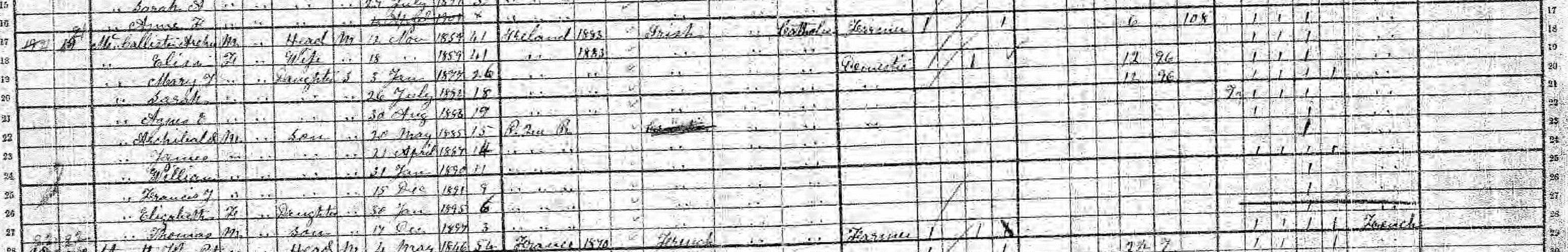 Excerpt from the 1901 census.