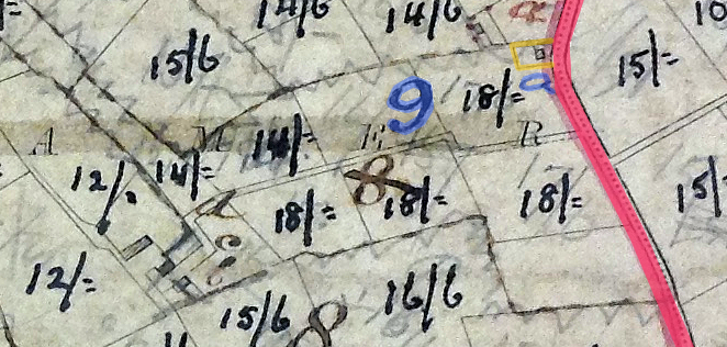 From 1864 to 1929, Ennis McAllister would have rented a house and a small garden on the lot 9a of the townland of Muckleramer for the sum of 15 shillings. If so, he should appear in the 1901 and 1911 censuses. Since he is missing from both sources, it is likely that the revision books weren’t updated when the property was passed to another tenant. A comparative study of the valuation revision book and the two censuses will shed light on the shortcomings of the revision book or vice versa. Nevertheless, we know for certain that Ennis and his family were on lot 9a of the Muckleramer townland. But where is this plot of land? This is again a document preserved by PRONI that will allow us to answer this question. The map shows the subdivision of land in several townlands including Muckleramer. It has been annotated making it difficult to read and arduous to identify lot 9a.